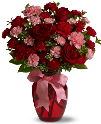 Seeking out a fine bouquet that's darling and delightful? This charming mix of fresh blooms in ripe, fruity shades of raspberry, peach and cherry is a tempting pick-me-up for any day of the week. Send one to a favorite friend to brighten up their day.