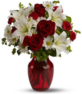 Valentine's Day is about the purity of love, and when you send this captivating bouquet to someone special, you'll be showing them how much you care. With red roses for love, and white blooms for purity, it's a heavenly floral gift for the loveliest holiday of the year.